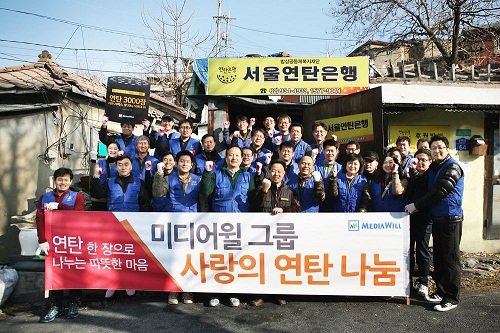 이날 행사에는 미디어윌그룹의 각 계열사를 대표하는 임직원 30여명이 참여해 연탄 및 생필품을 독거노인 및 저소득층 가구에 직접 배달했다
