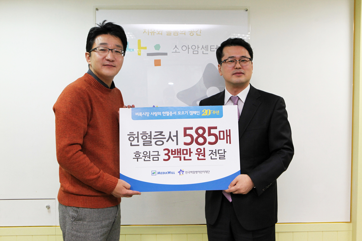 대한민국 대표 생활정보미디어 벼룩시장(대표 백기웅, www.findall.co.kr)은 20년 역사를 자랑하는 벼룩시장의 대표적인 사회공헌활동 ‘사랑의 헌혈증서 모으기’를 통해 올 한 해 모인 헌혈증서787장 중 585장과 후원금300만원을 한국백혈병어린이재단에 전달했다고 30일 밝혔다.