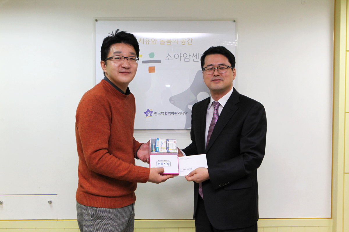 29일 한국백혈병어린이재단에서 진행된 헌혈증서 전달식에는 벼룩시장 이동주 본부장과 벼룩시장 직원, 서선원 한국백혈병어린이재단 사무국장 등이 참석했다.